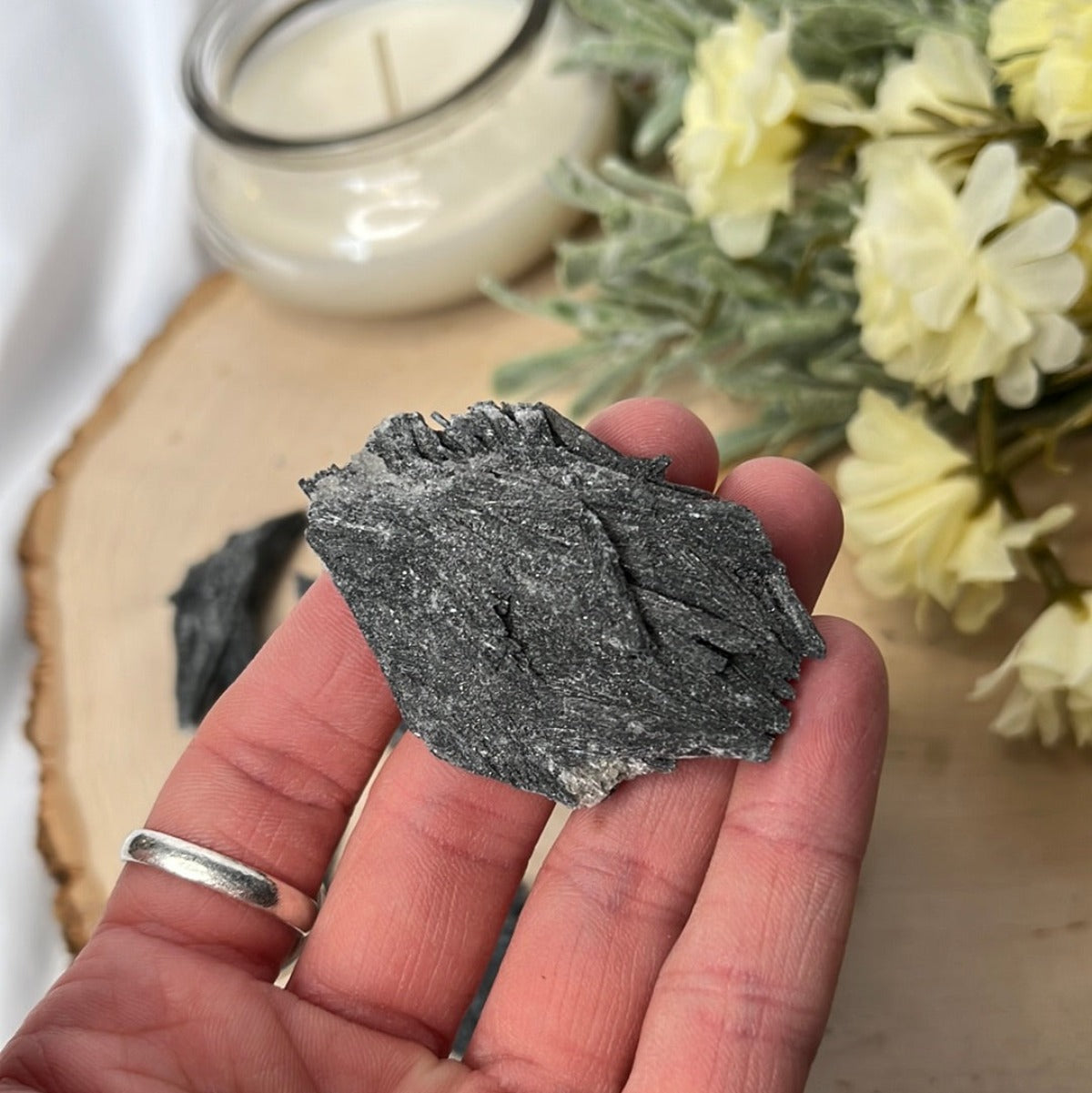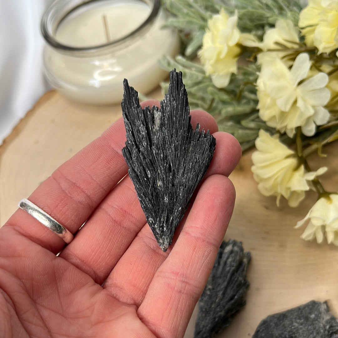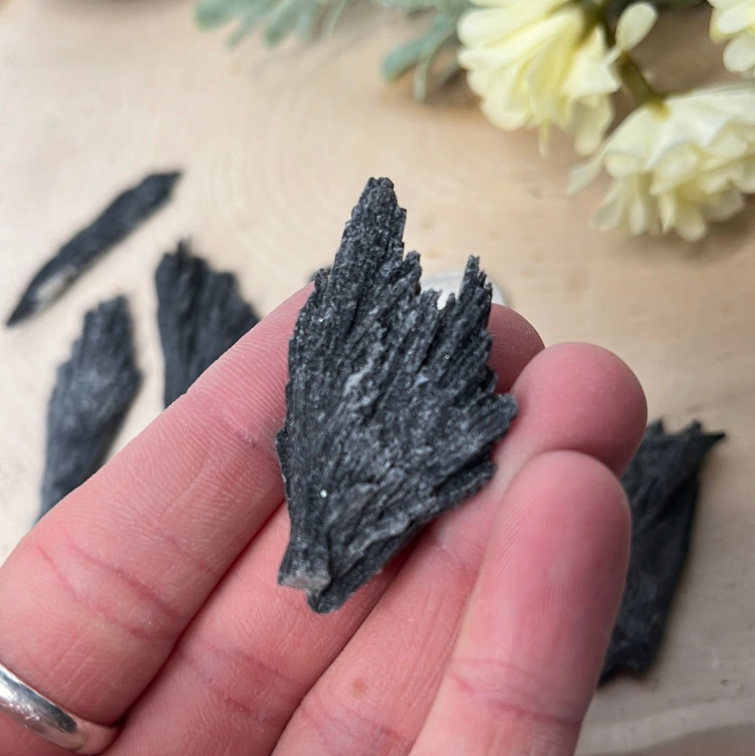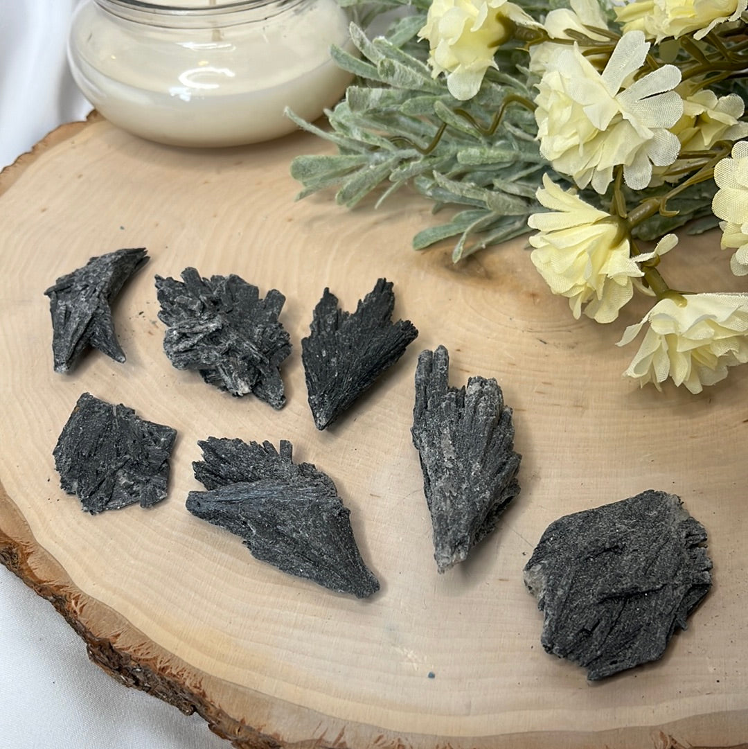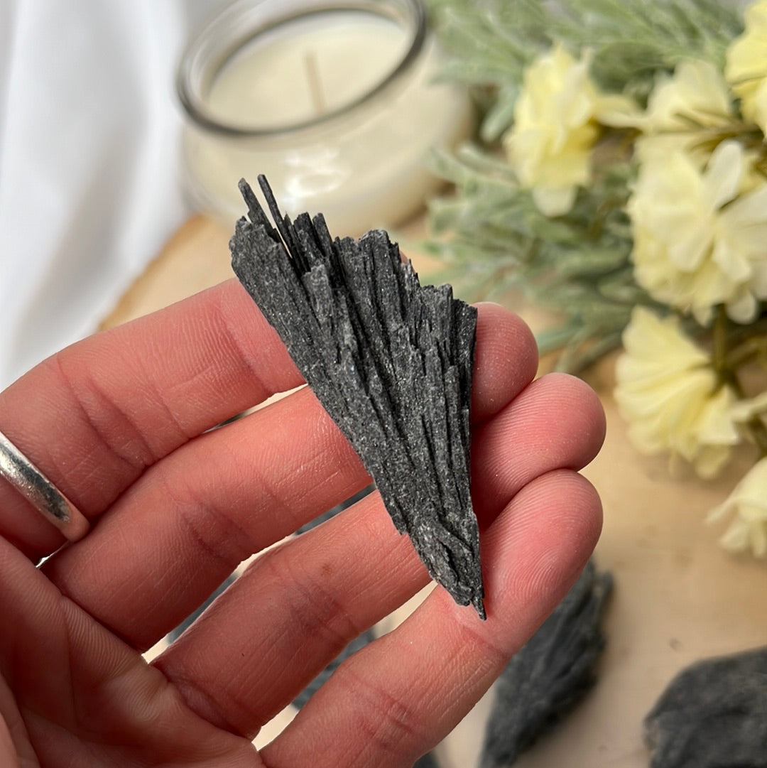 Experience the potent and transformative energy of Black Kyanite Blades sourced directly from Brazil. Each blade is hand-selected for its exceptional quality and natural beauty, showcasing the unique striations and dark coloration that make Black Kyanite so sought after in the crystal world.
