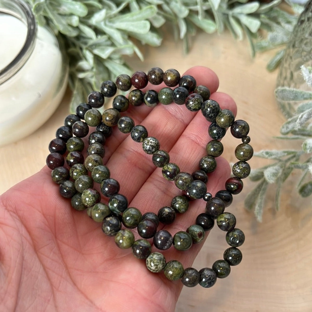 Channel the earthy energy of Bloodstone with our Small Round Bead Bracelet. This stunning bracelet features small, polished Bloodstone beads, known for their powerful healing and grounding properties. Bloodstone is believed to enhance strength, courage, and vitality, making it a must-have crystal for those seeking balance and protection. The classic round bead design adds a touch of sophistication to this accessory, perfect for everyday wear or special occasions. Elevate your style and energy with the natural beauty and healing energy of our Bloodstone Small Round Bead Bracelet. Embrace the transformative power of this crystal and add a touch of positivity to your wardrobe today.