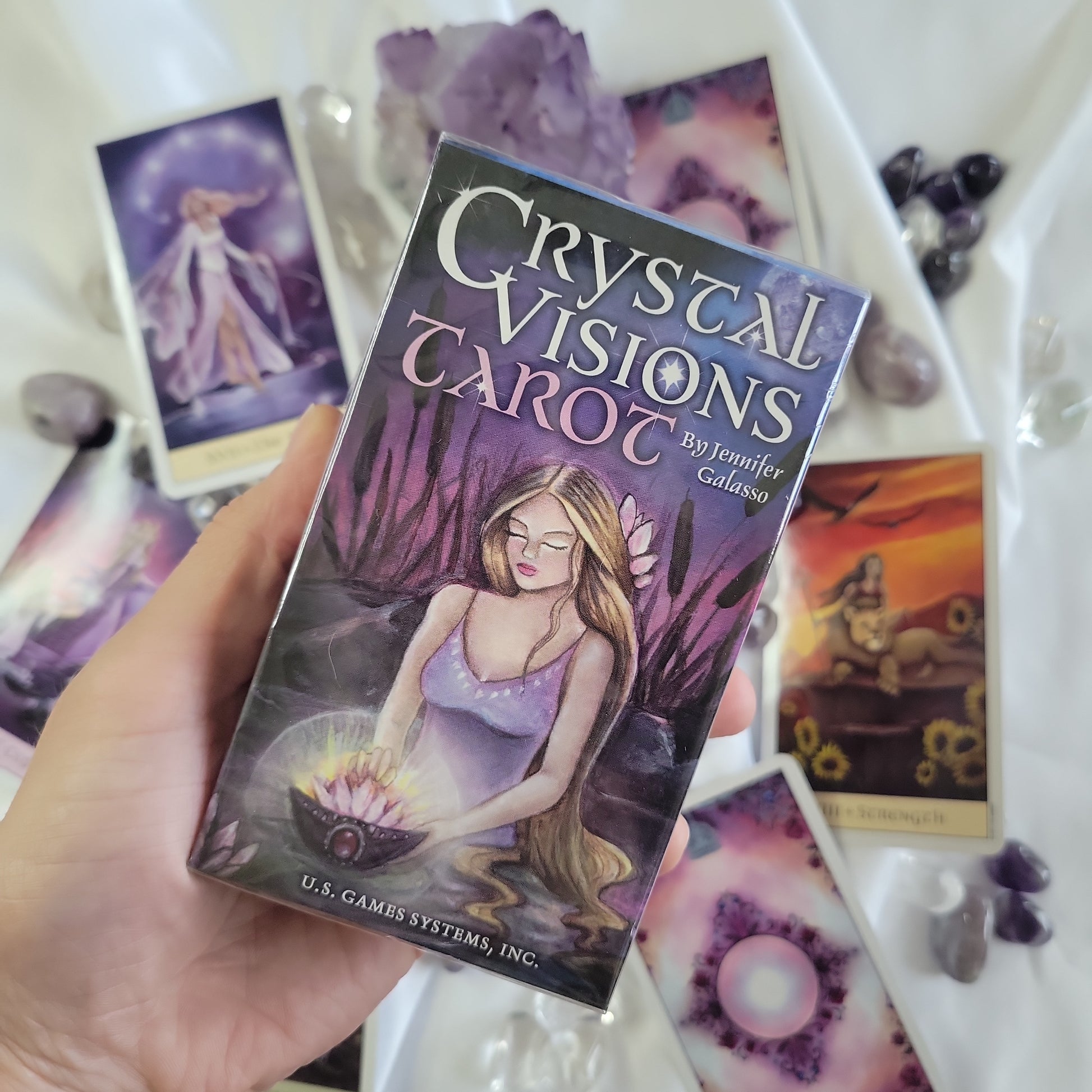 The Crystal Visions Tarot deck includes 78 cards with an additional unknown card for gazing into future situations that have not yet been revealed, or for exploring issues with deeper insight. The instruction booklet offers both upright and reversed meanings.
