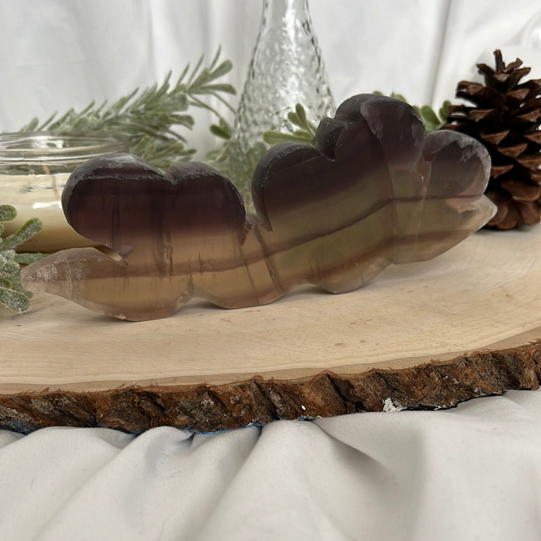 A mesmerizing and unique decorative piece that will elevate any space in your home or office. Crafted from high-quality Fluorite crystal, this cloud-shaped sculpture showcases the beautiful colors and patterns that Fluorite is famous for. Known for its calming and protective properties, Fluorite is believed to promote mental clarity and harmony in the environment. Display this Fluorite Cloud on a tabletop, shelf, or desk to bring a sense of tranquility and positive energy to your surroundings. Add a touch of elegance and mystique to your decor with this exquisite Fluorite Cloud.