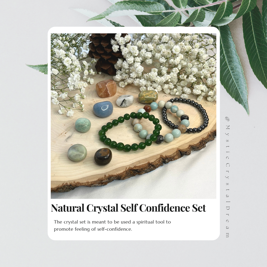 This crystal set is meant to be used a spiritual tool to promote feeling of self-confidence.
